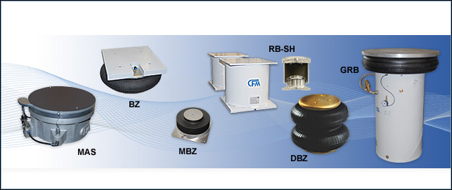 CFM空气弹簧系统应用于弹性承载,工作于低频模式,不同型号产品具有的