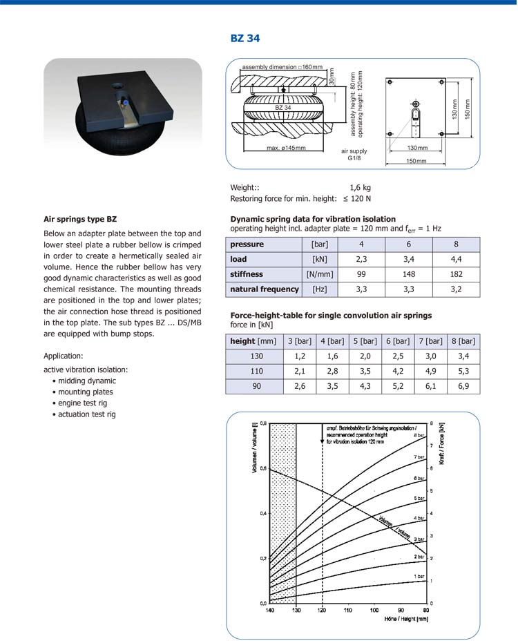 下面的适配器板之间的顶部和下钢板橡胶波纹管是波纹为了创造一个密封的空气体积。因此,橡胶波纹管具有很良好的动态特性以及良好的耐化学性。安装螺纹定位在顶部和下部板;空气连接软管螺纹在顶板。子类型BZ…DS / MB配备了停止凸点。